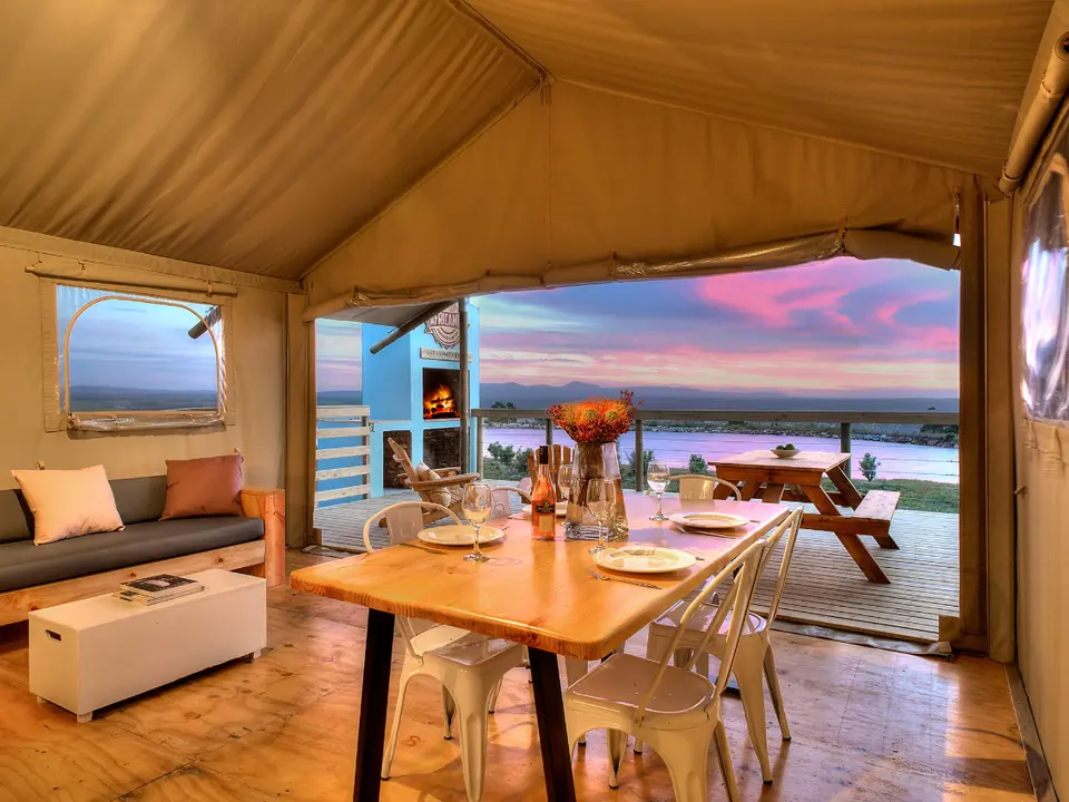 Wat een geweldige plek! AfriCamps Stanford Hills is gelegen op Stanford Hills Estate, een kleinschalig wijnlandgoed nabij Hermanus. De 5 luxe tenten bevinden zich aan de voet van de Klein River Mountains en bieden allemaal onbelemmerd uitzicht op de dam en de vallei. In de lente van augustus tot november, staan duizenden protea’s en speldekussens in bloei en laat het fynbos zich van haar mooiste kant zien. The Tasting Room is een populair restaurant op het wijnlandgoed. Hermanus ligt op 10 minuten rijden.