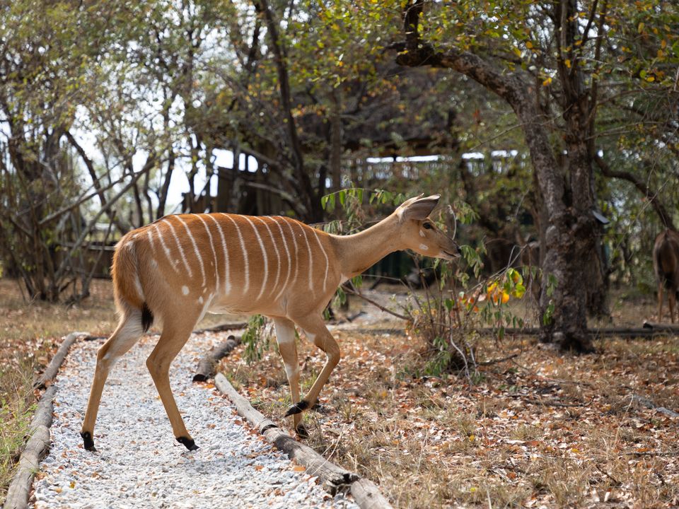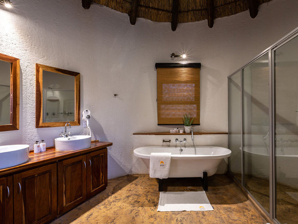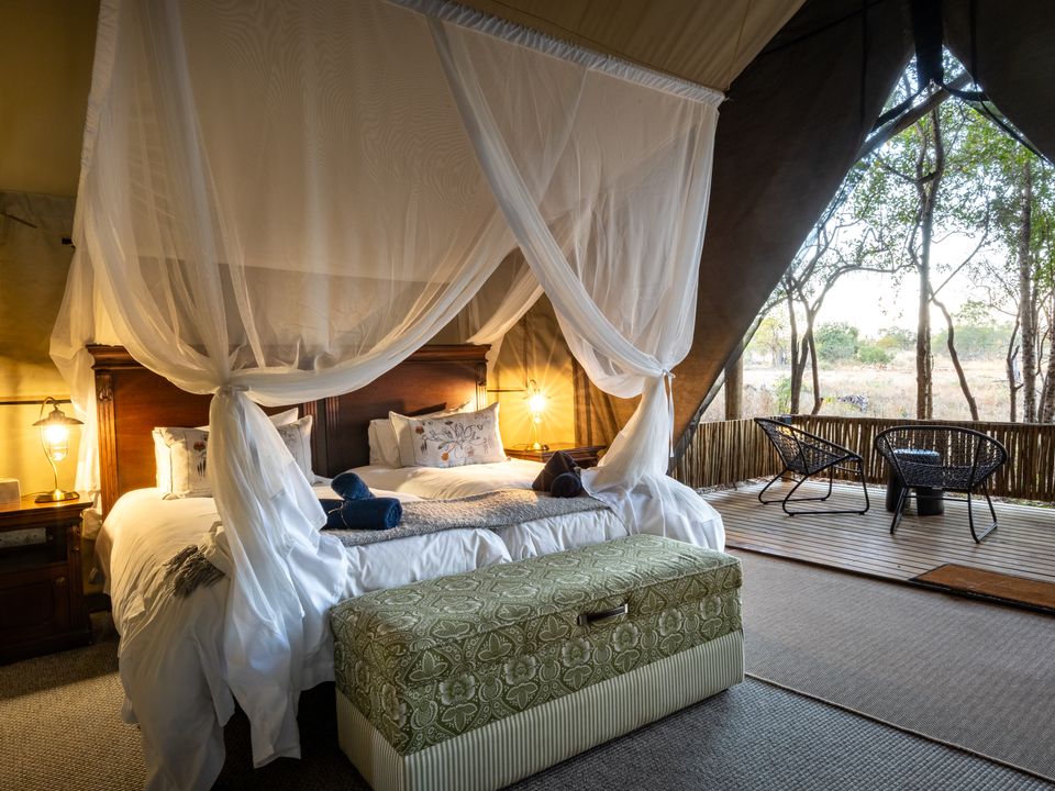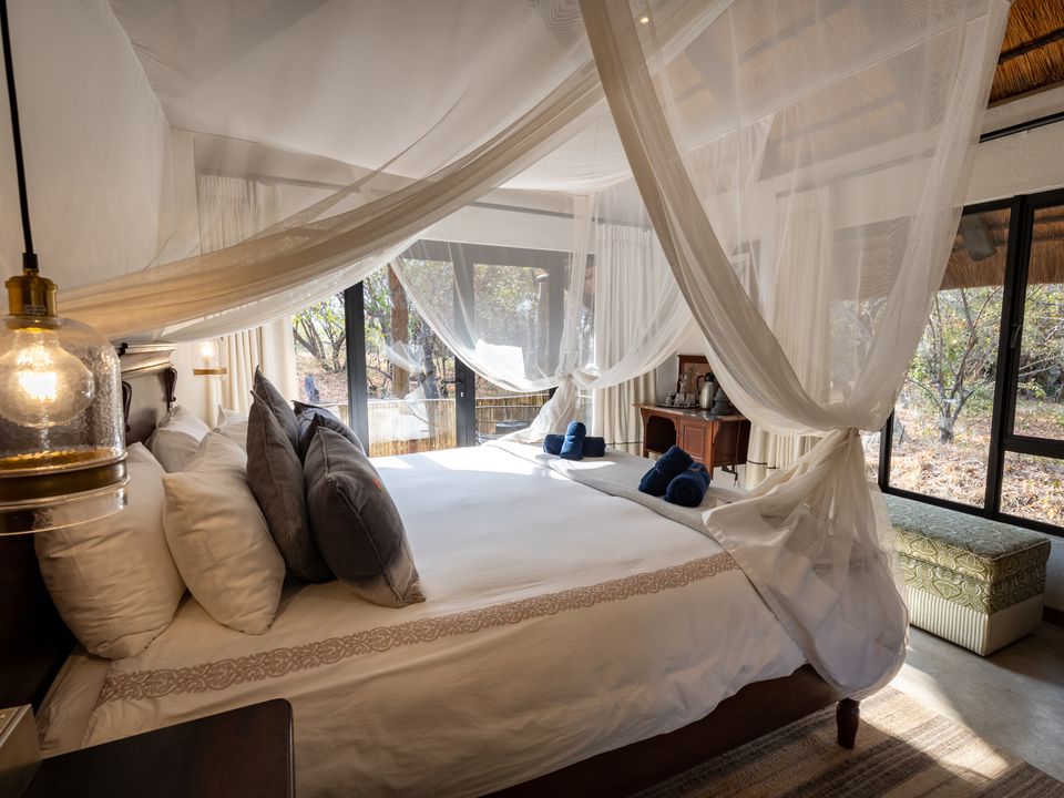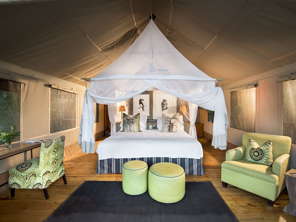 Slapen in luxe safaritenten of een chalet en gamedrives maken in een open 4×4 safari-jeep of rustig plaatsnemen met uitzicht op de waterpoel, waar het wild komt drinken. Voor verfrissing neem je een duik in het zwembad, blader even door de boeken in de bibliotheek voor meer achtergrondinformatie en vergaap je aan de uitgebreide collectie Afrikaanse maskers.