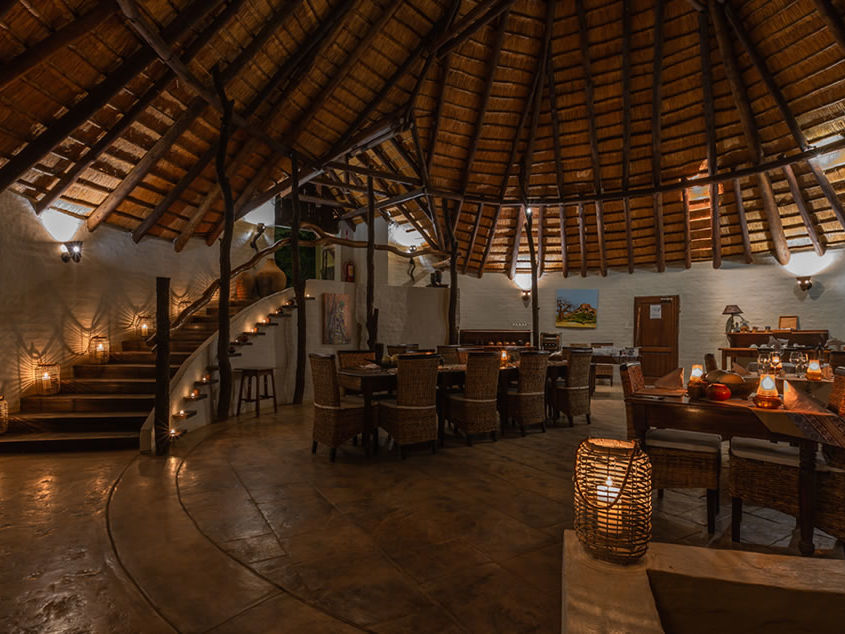 Deze mooie lodge ligt in het Mapesu Private Game Reserve, een 12.500 hectare groot reservaat omringd door unieke zandsteenformaties, Mopane bush veld en talloze wilde dieren. Eet in de boma (omheind rond het vuur onder de schitterende zuidelijke nachthemel, in de lapa (overkapte buitenruimte) rond het zwembad of midden in de bush. Relax aan het zwembad en bestel een drankje aan de bar.