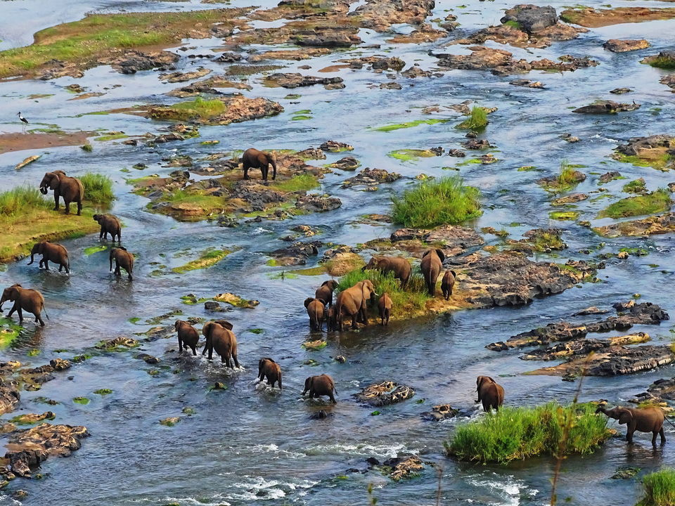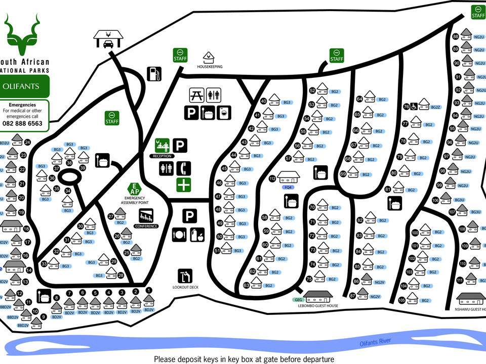 Olifants restcamp is echt het mooiste restcamp van het Krugerpark. Het ligt hoog op een heuvel met onvergetelijk uitzicht op de kronkelende Olifantsrivier, waar nijlpaarden achteloos ronddobberen en krokodillen op de loer liggen. Veel dieren komen hier hun dorst lessen en met geluk zie je kuddes olifanten de rivier oversteken.