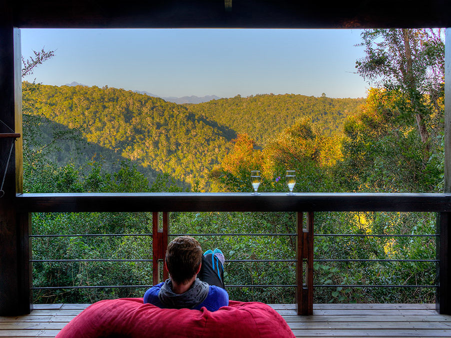 Over een smalle kronkelweg, langs bloemenweiden en weilanden met grazende paarden. Slapen aan de Tuinroute in Hog Hollow Country Lodge vertaalt zich in adembenemend uitzicht op valleien en dichte bossen van het Tsitsikamma gebergte.