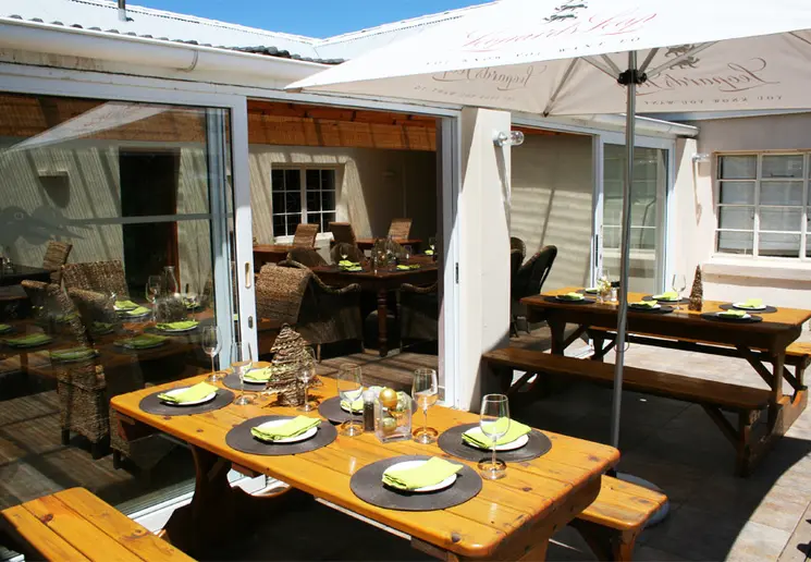 Sfeervol guesthouse in hartje Franschhoek met acht mooie kamers. Op de binnenplaats vind je het zwembad en grote bomen die schaduw geven. Je geniet van uitzicht op de bergen en wijnranken. De hoofdstraat van Franschhoek ligt om de hoek.