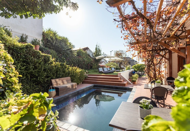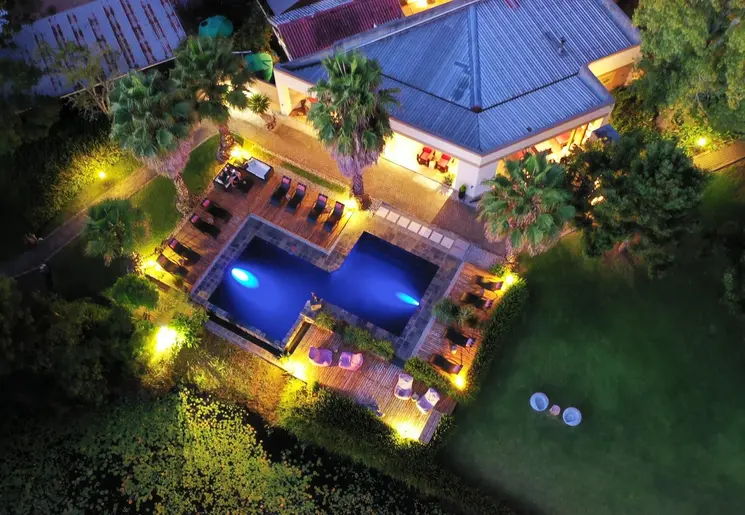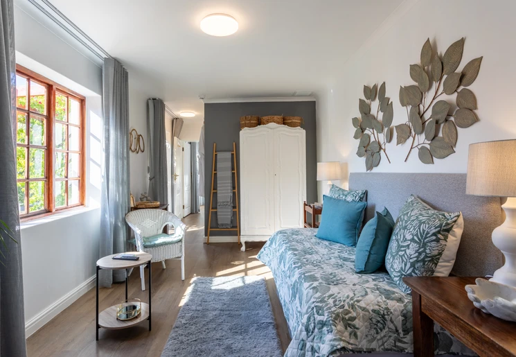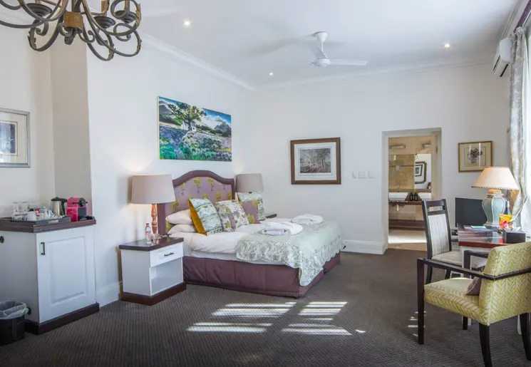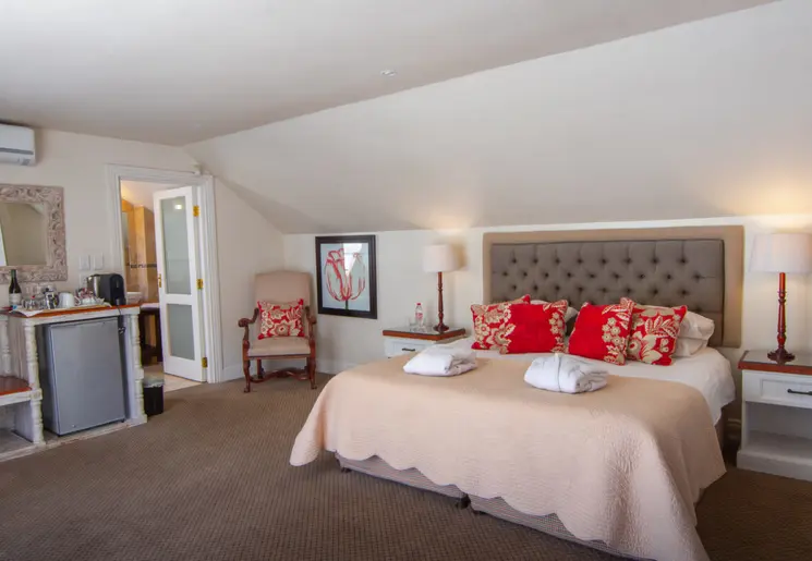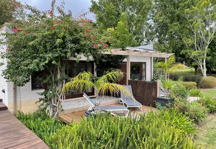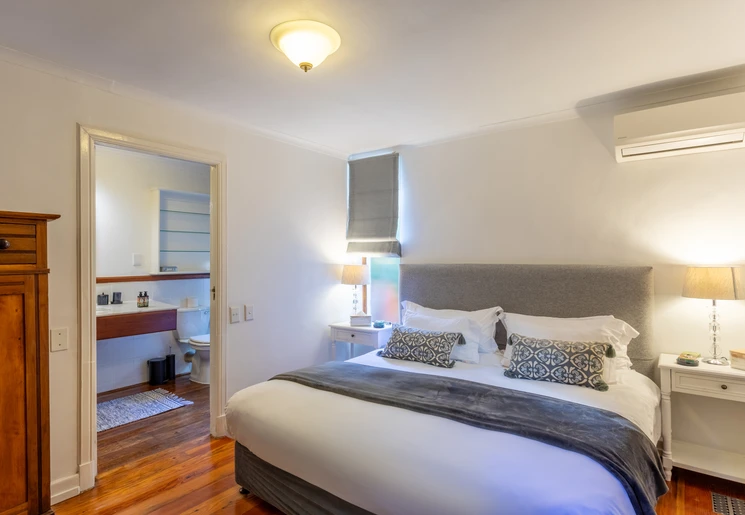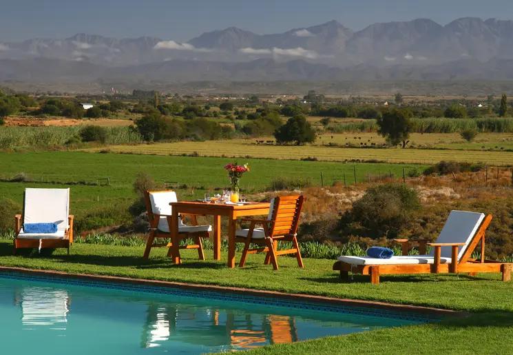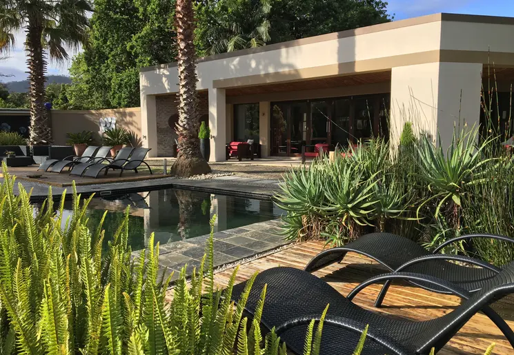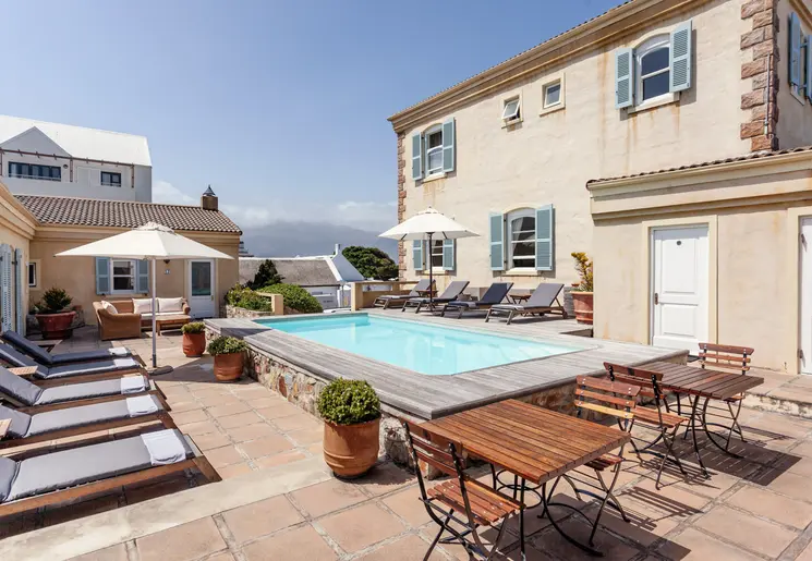 Sfeervol guesthouse in hartje Franschhoek met acht mooie kamers. Op de binnenplaats vind je het zwembad en grote bomen die schaduw geven. Je geniet van uitzicht op de bergen en wijnranken. De hoofdstraat van Franschhoek ligt om de hoek.