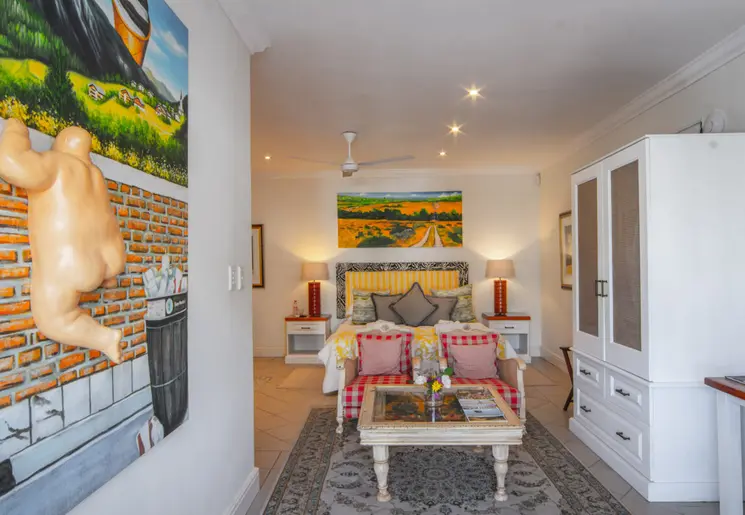 Leuk detail zijn de kunstvoorwerpen die overal in de kamers en in de tuin te vinden zijn.