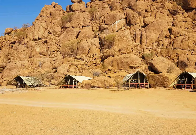 Slapen in een safaritent die verscholen ligt tussen de granietrotsen, dat is een uniek belevenis. Rust en privacy in dit kleinschalige kamp zijn gewaarborgd. In de nabije omgeving zijn veel uitstapjes te ondernemen.
